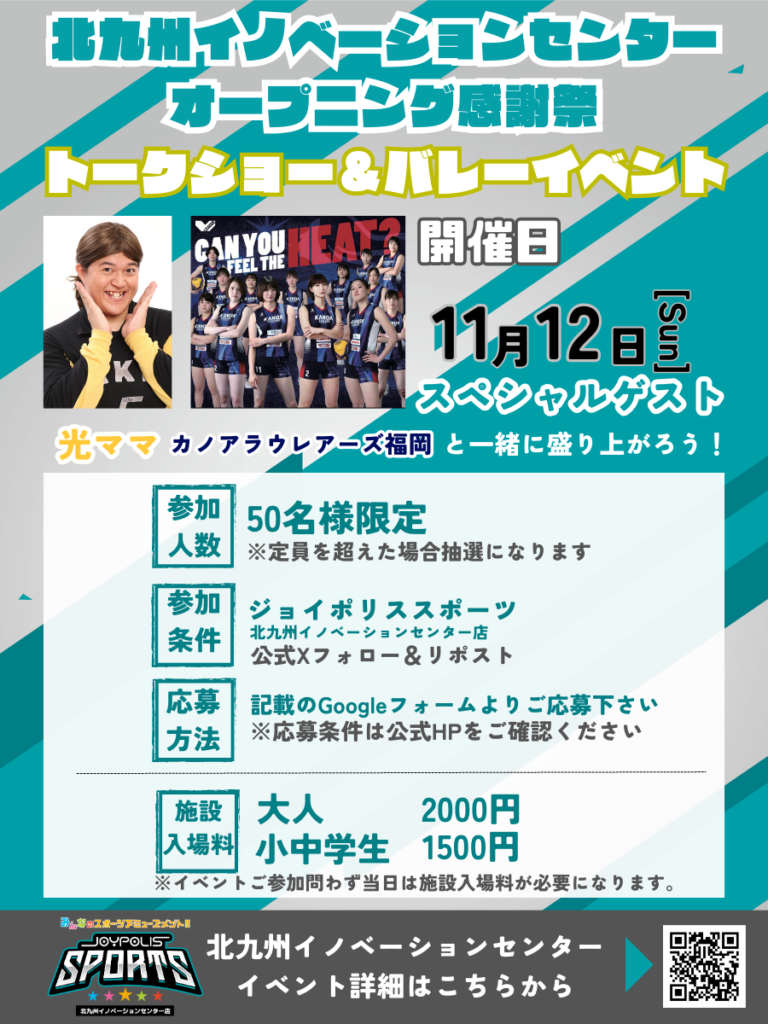 JOYPOLIS SPORTS 北九州イノベーションセンター店では、オープニング感謝祭に向けてSNSキャンペーンを実施しています。