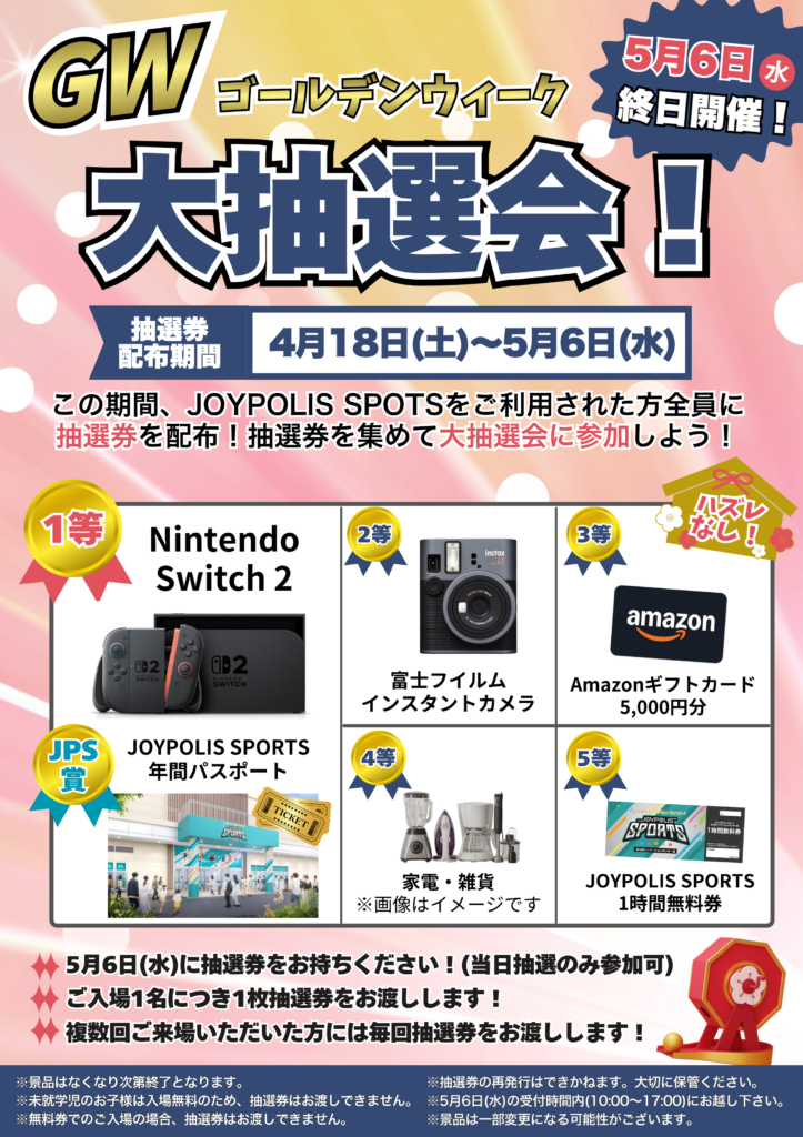 この機会にぜひ、ご家族やお友達とJOYPOLIS SPORTSへお越しください!